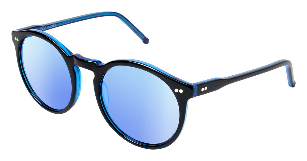 Take a Retro fling in a simple yet stylish oversized Navigator shape with slender metal bridge bar detailing. This unisex design, featuring tinted and flash lenses, equally compliments “serious” and casual dressing. Handmade.