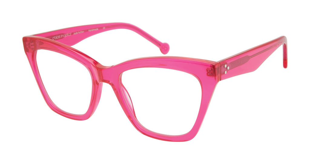 The Ella - A chic oversized feminine silhouette with cat eye contours – offers a contemporary, cosmopolitan vibe. This statement design, handcrafted in polished acetate, features vintage pin-rivet hinges and the iconic CIO logo embedded in the tips. Check out our striking Electric Pink!