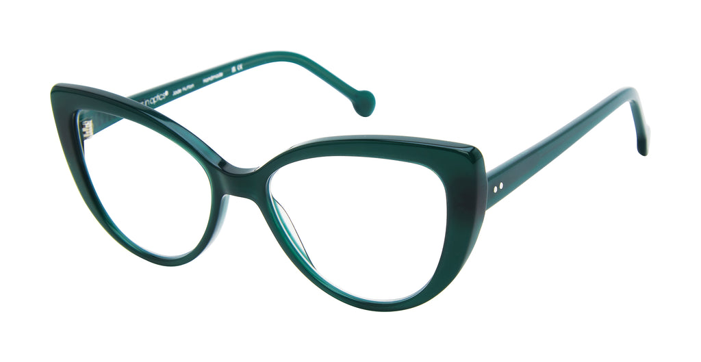 Lola’s oversized hybrid silhouette combines a Butterfly shape with Cat Eye lines that magically uplifts the look of the face. Handcrafted in three colors including a brilliant Emerald Green that kicks up your look.