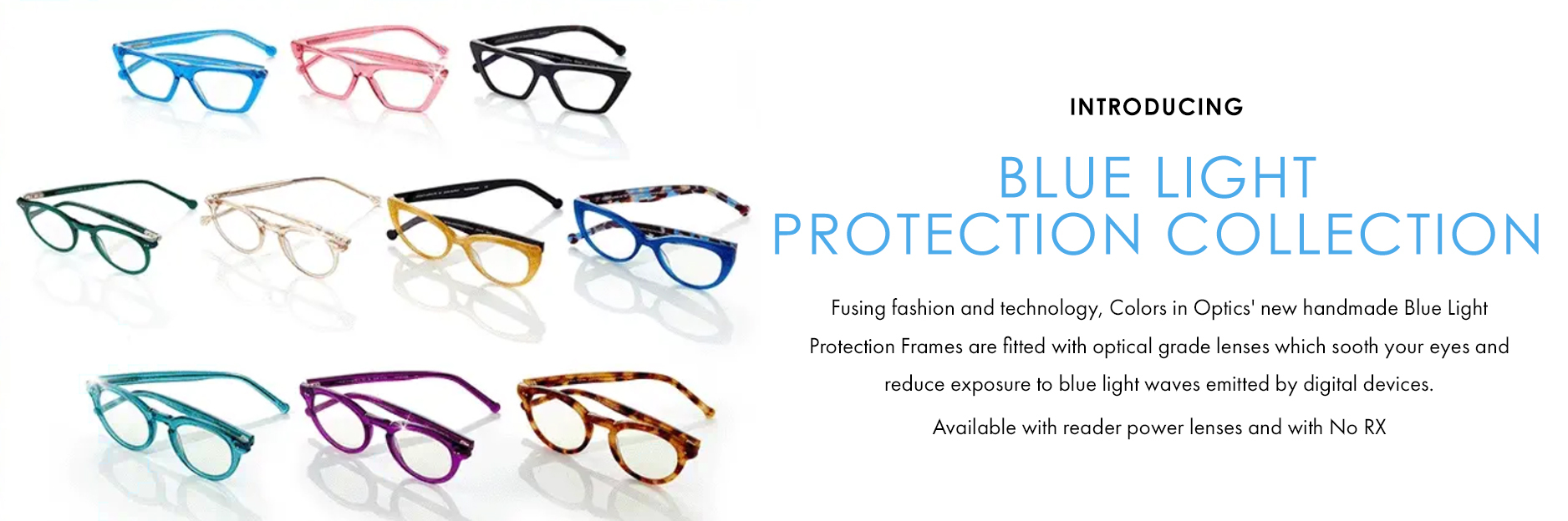 Fusing fashion and technology, Colors in Optics’ handmade Blue Light Protection frames are fitted with optical grade lenses which sooth the eyes and reduce exposure to blue light waves emitted by digital devices.