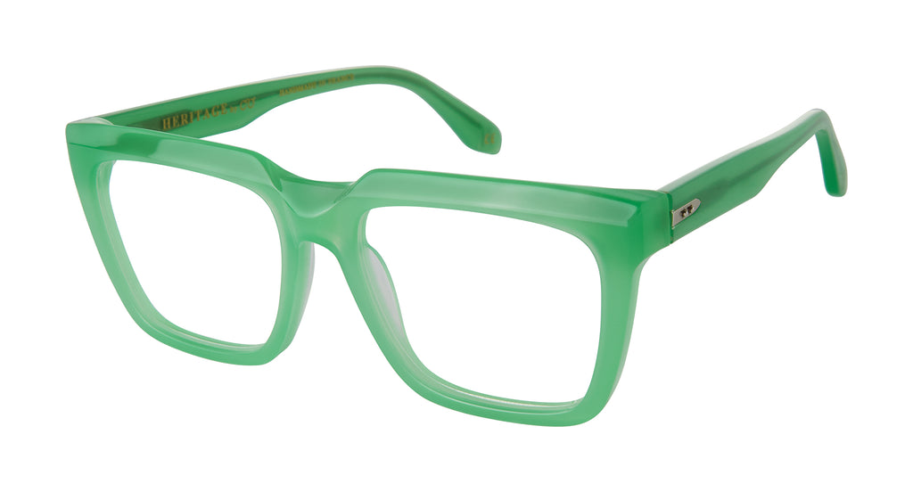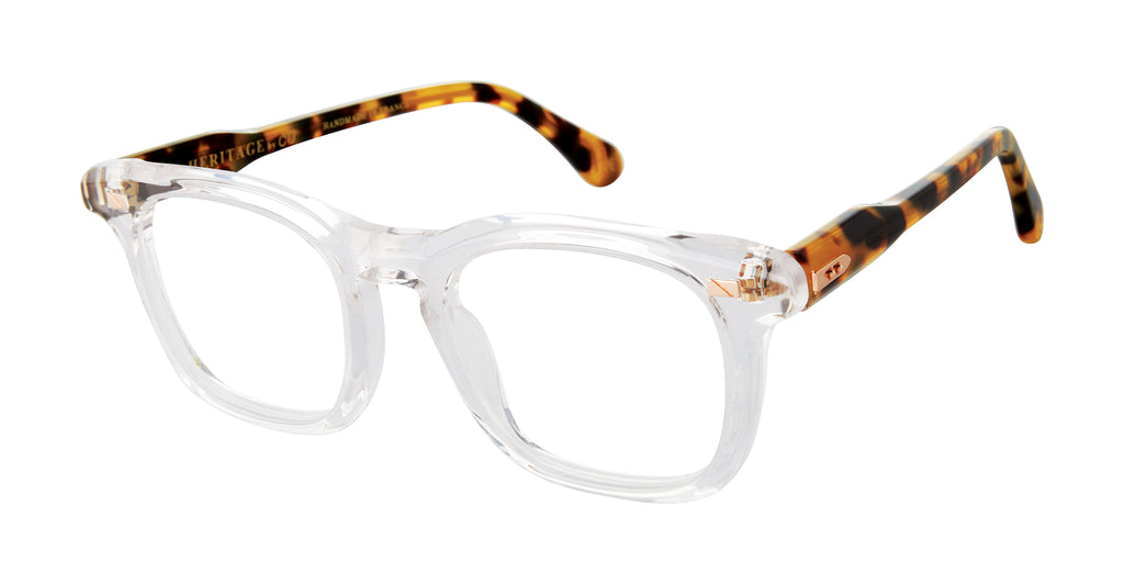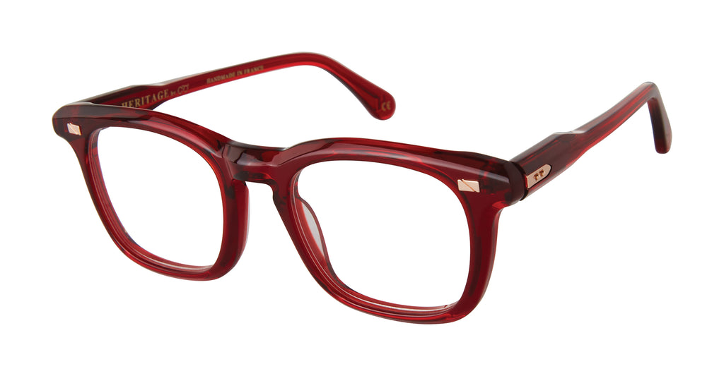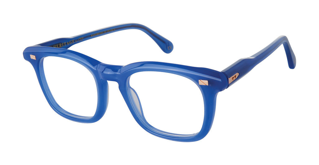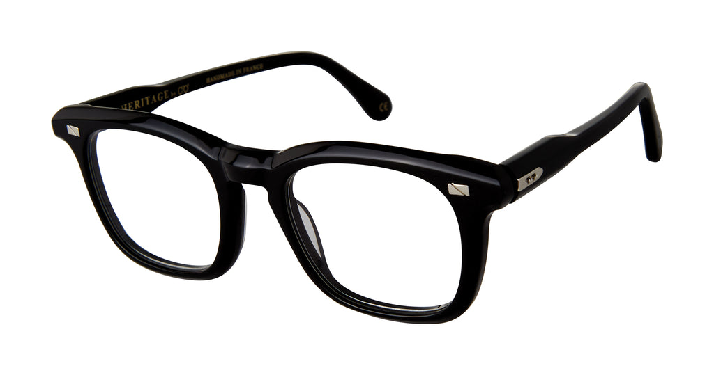Handmade Heritage frames are luxurious to the touch, resilient, perfectly balanced and remarkably comfortable. Cast in polished acetate, the frames offer a substantial feel for the wearer. Each is embellished by double pin head metal décor on the temples and an eye-catching embedded “H” logo in the tips.