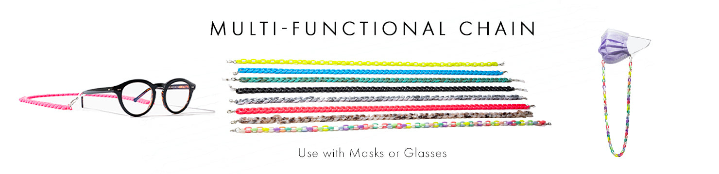 We're putting the “fun” in functional with our New Eyeglass and Mask Chains. These very cool chunky link necklaces will secure your eyewear with a silicone gripper, or your mask with a claw clasp. Dual function and can be worn either way!