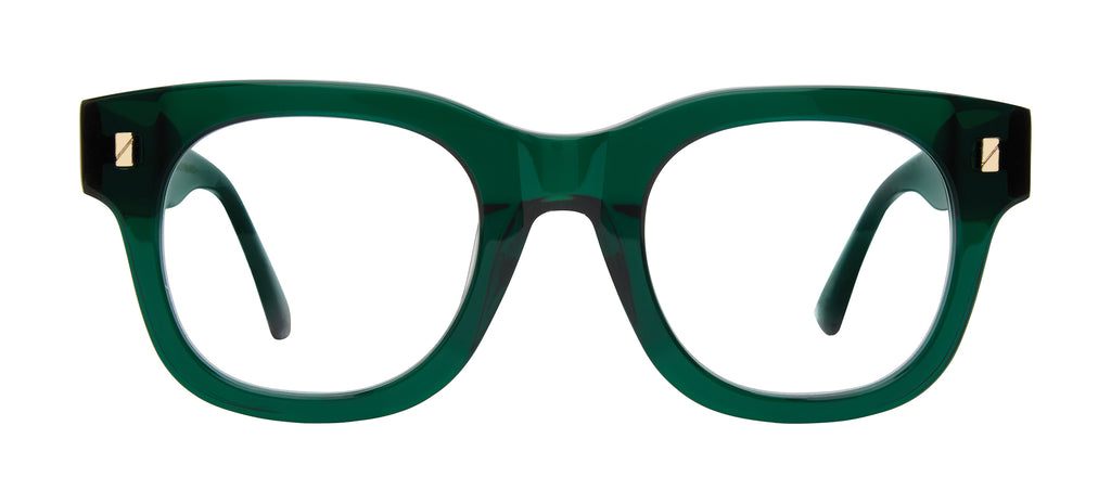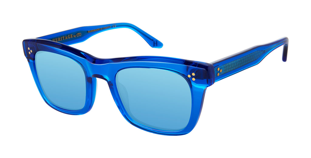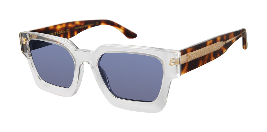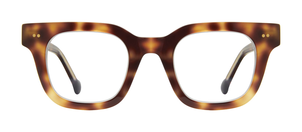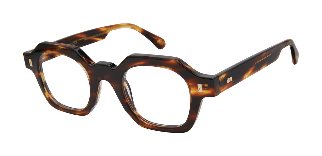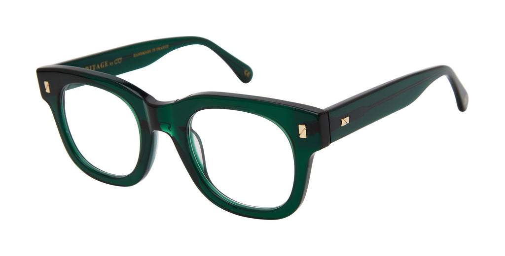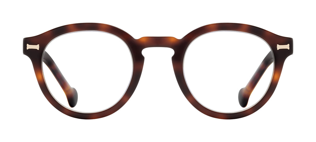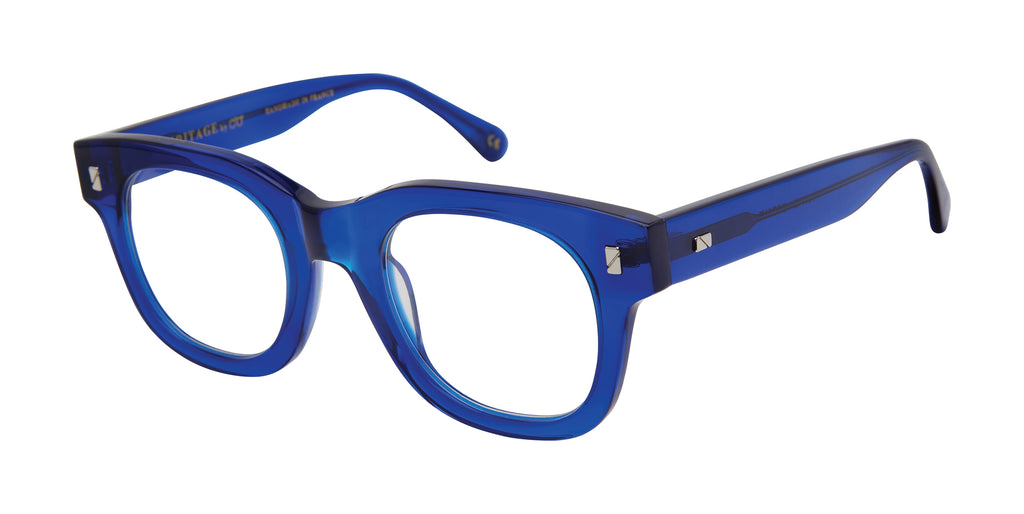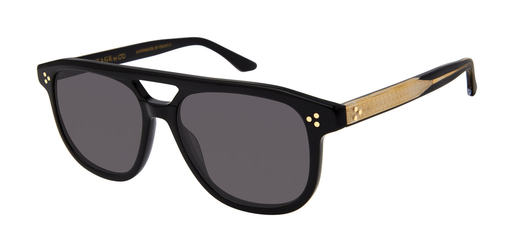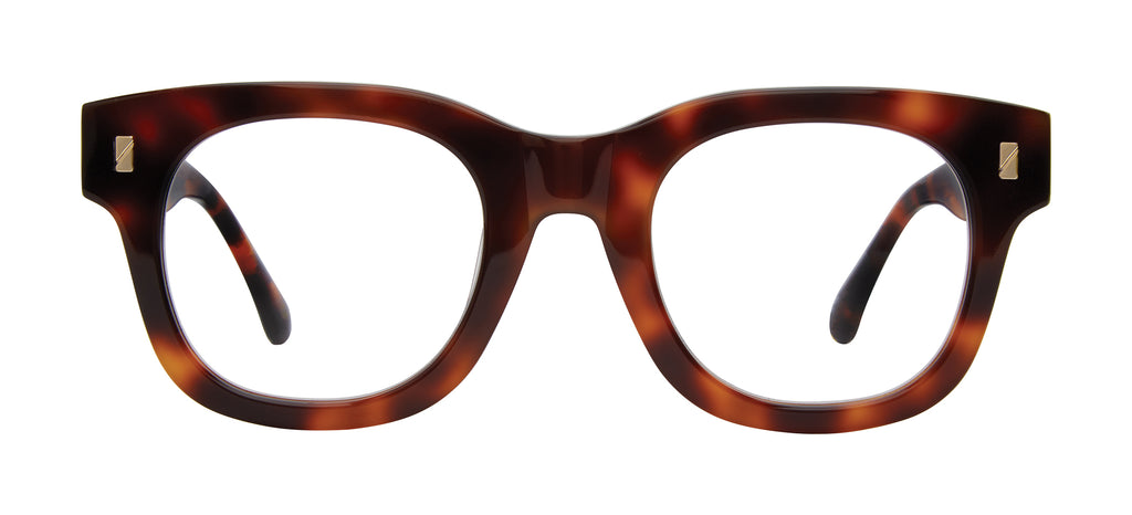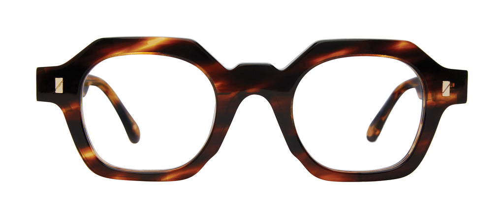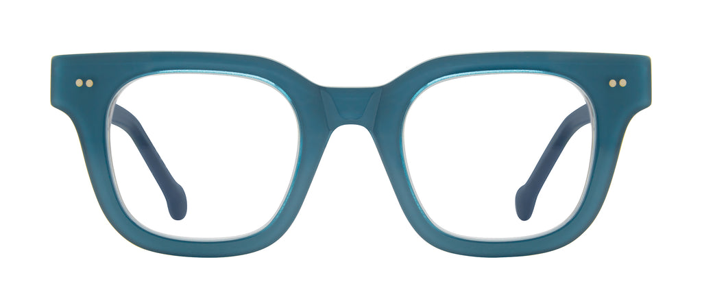 An iconic square silhouette complimentary to almost every face shape, Eldridge presents vintage double pin head detailing and a keyhole bridge. Handmade.