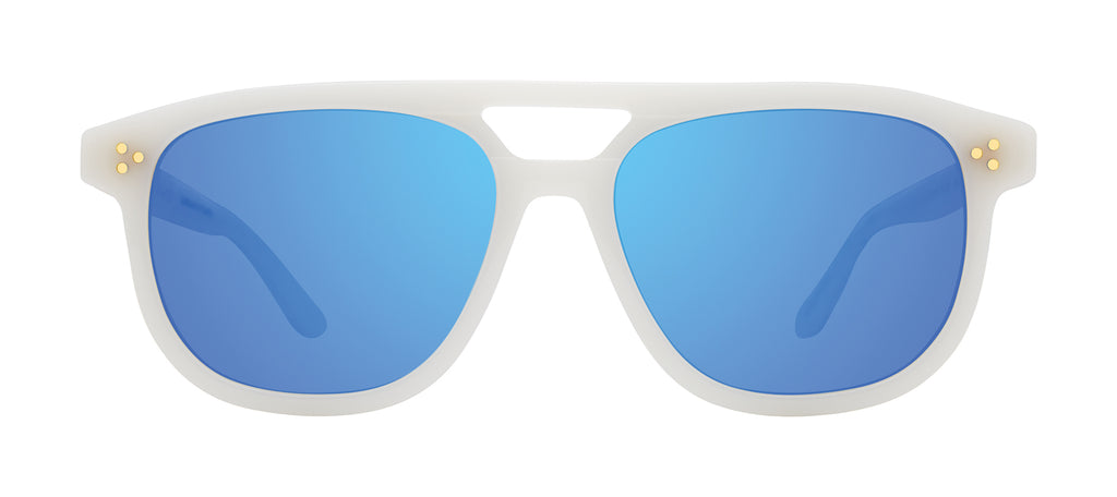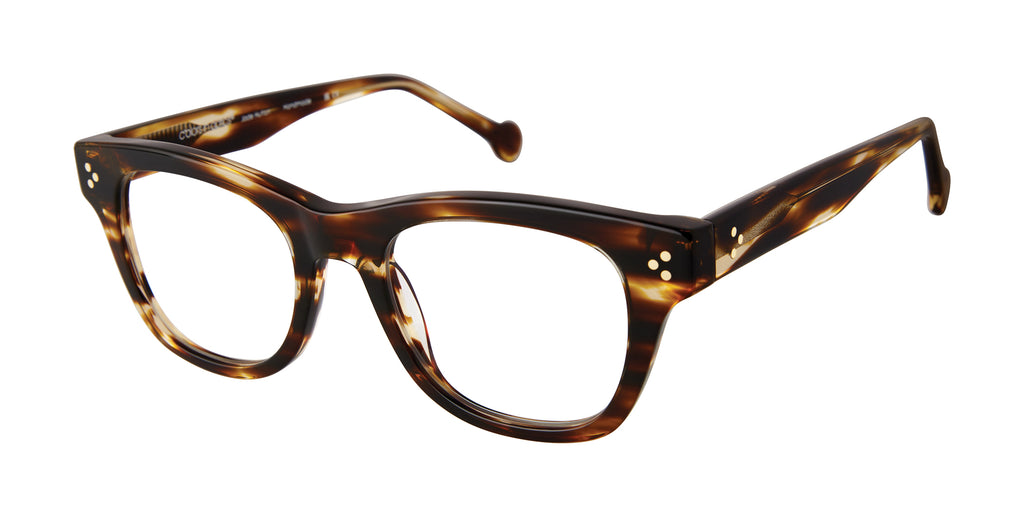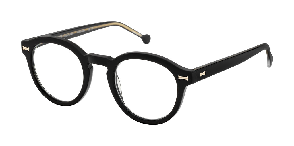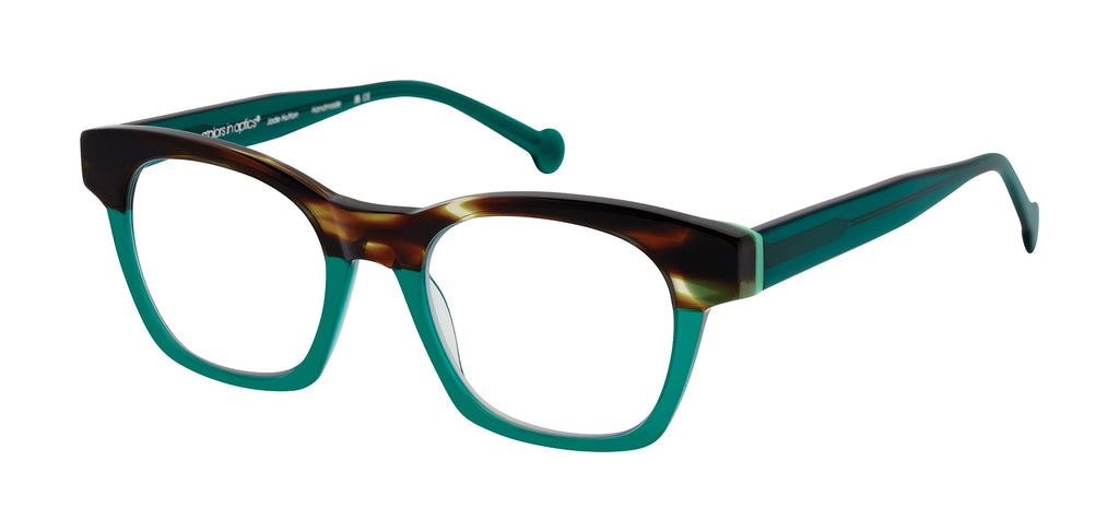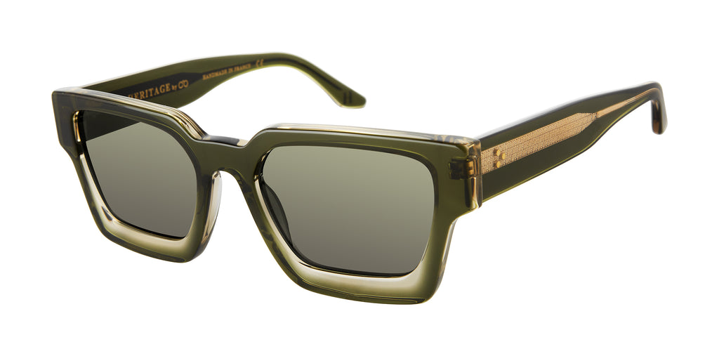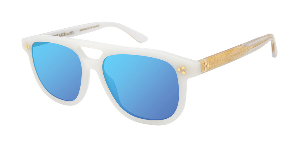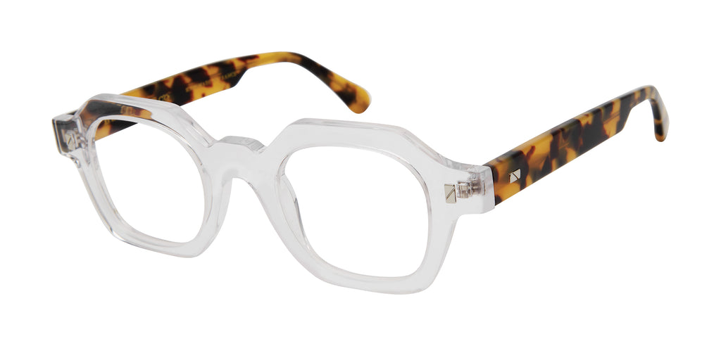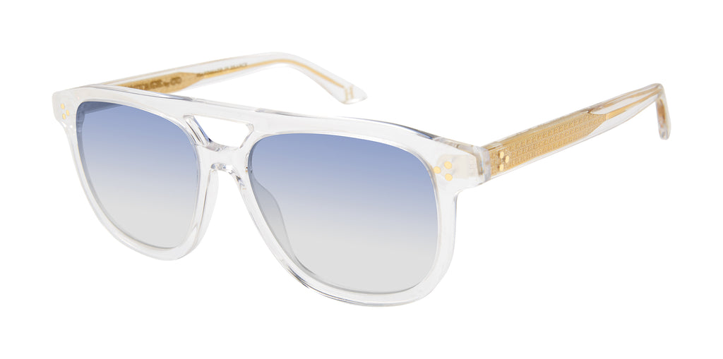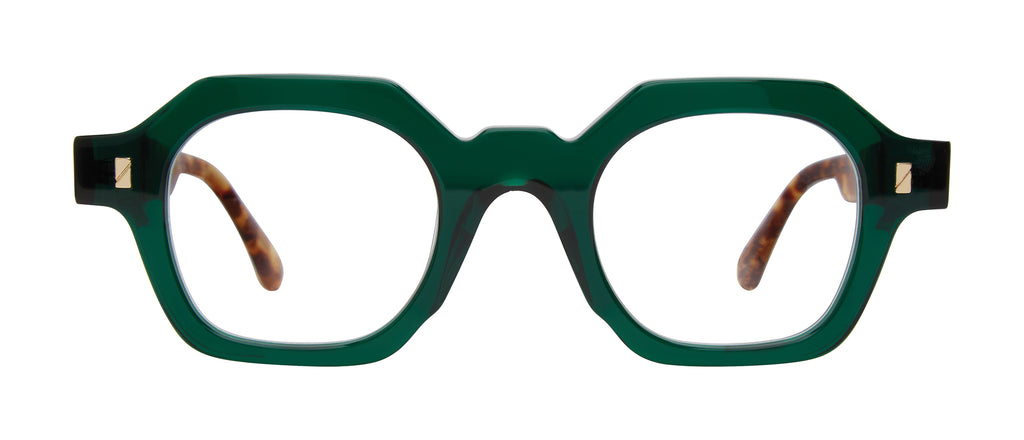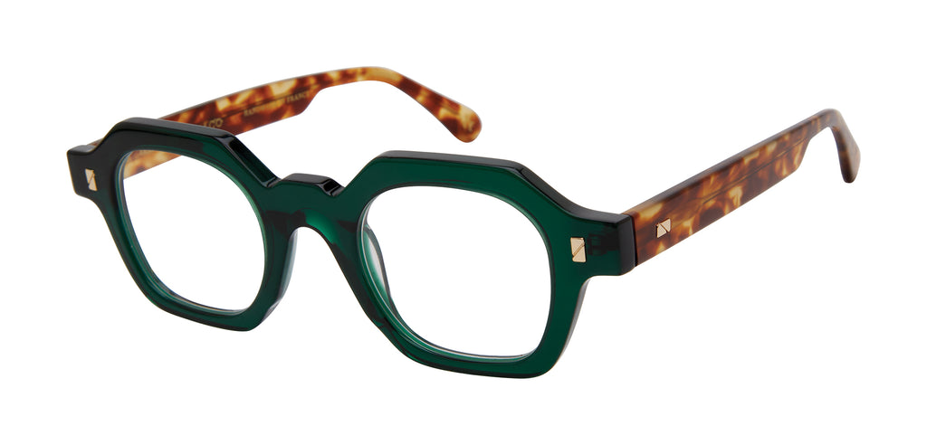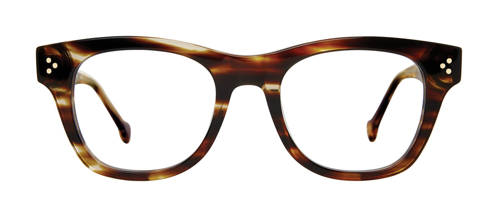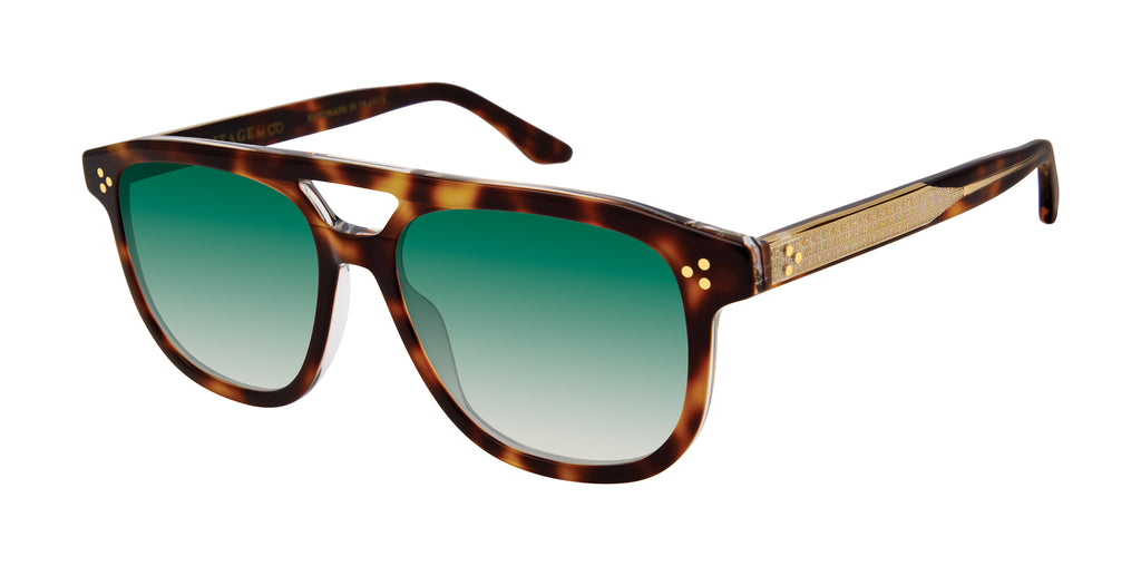 An iconic square silhouette complimentary to almost every face shape, Eldridge presents vintage double pin head detailing and a keyhole bridge. Handmade.