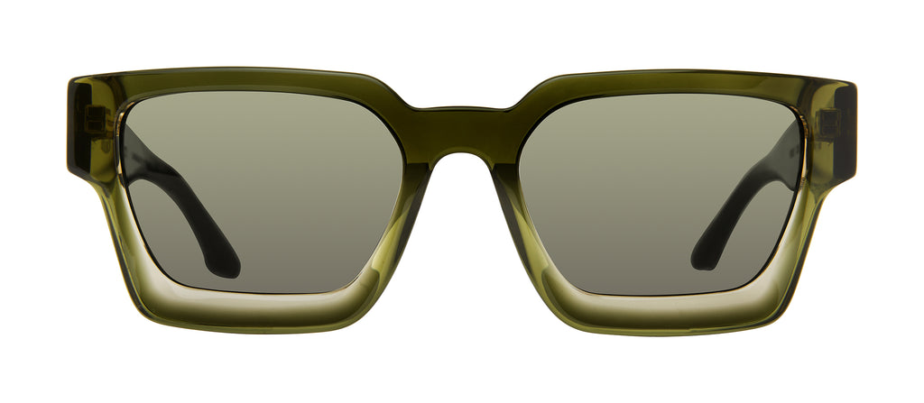 A polished, remastered original vintage sunglass shape, Thompson’s chunky, mid-sized rectangular statement silhouette both flatters and slims the face. Five-barrel pin rivet hinges signal impeccable craftsmanship. Multiple colorways, handmade. Unisex.