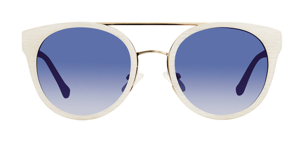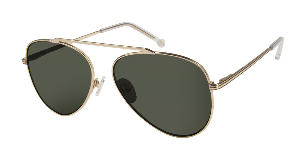 An iconic Aviator in a Cat Eye shape has a modern edge expressed in a voguish triple bridge, oversized lenses, and signature CIO rounded tips. Handcrafted.