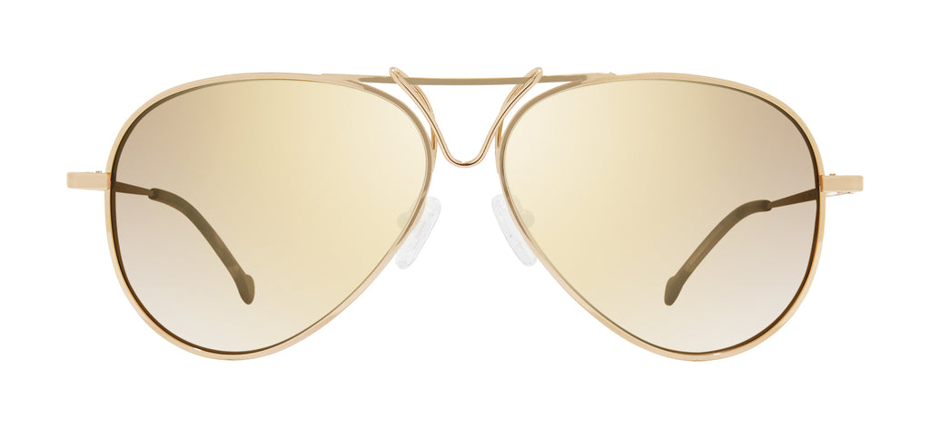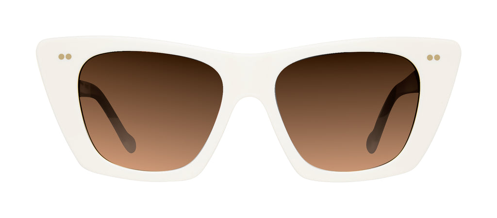 An iconic Aviator in a Cat Eye shape has a modern edge expressed in a voguish triple bridge, oversized lenses, and signature CIO rounded tips. Handcrafted.