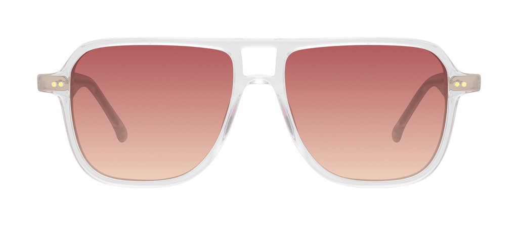 An iconic square silhouette complimentary to almost every face shape, Eldridge presents vintage double pin head detailing and a keyhole bridge. Special cheers for the spirited Sangria Crystal and Prosecco Crystal colorways. Handmade.