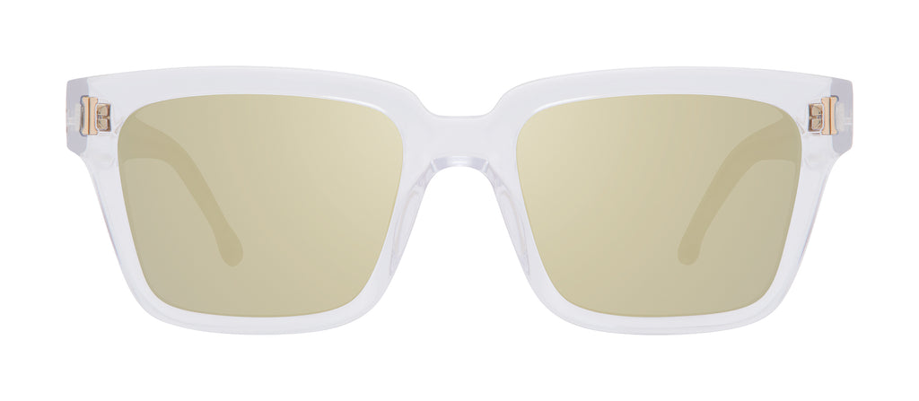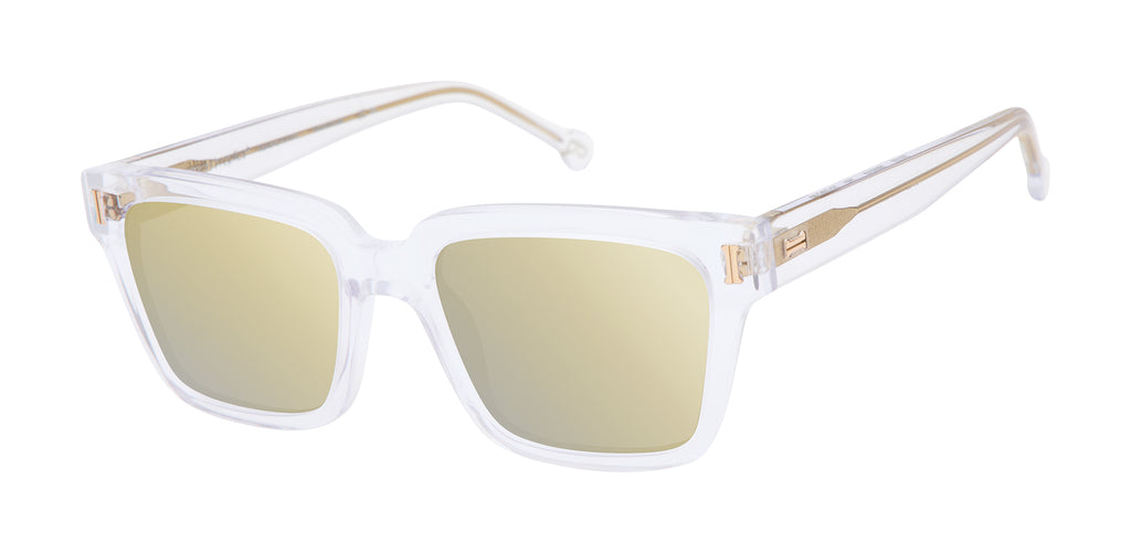 Like its inspiration, the picturesque Southern Italian coastline region, Amalfi is uniquely breathtaking. A luxe oversized square, this glam sunglass presents beveled edges and upswept contours that lift the face. Handcrafted in multiple colorways including Crystal with striking mirror lenses in a gold, pink and lime rainbow motif.