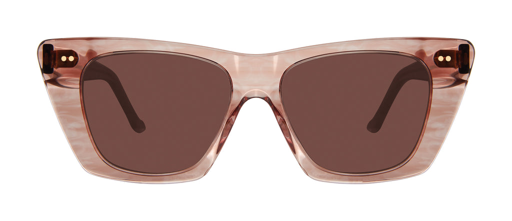 An iconic square silhouette complimentary to almost every face shape, Eldridge presents vintage double pin head detailing and a keyhole bridge. Special cheers for the spirited Sangria Crystal and Prosecco Crystal colorways. Handmade.