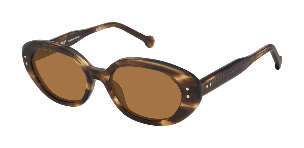 A polished, remastered original vintage sunglass shape, Thompson’s chunky, mid-sized rectangular statement silhouette both flatters and slims the face. Five-barrel pin rivet hinges signal impeccable craftsmanship. Multiple colorways, handmade. Unisex.